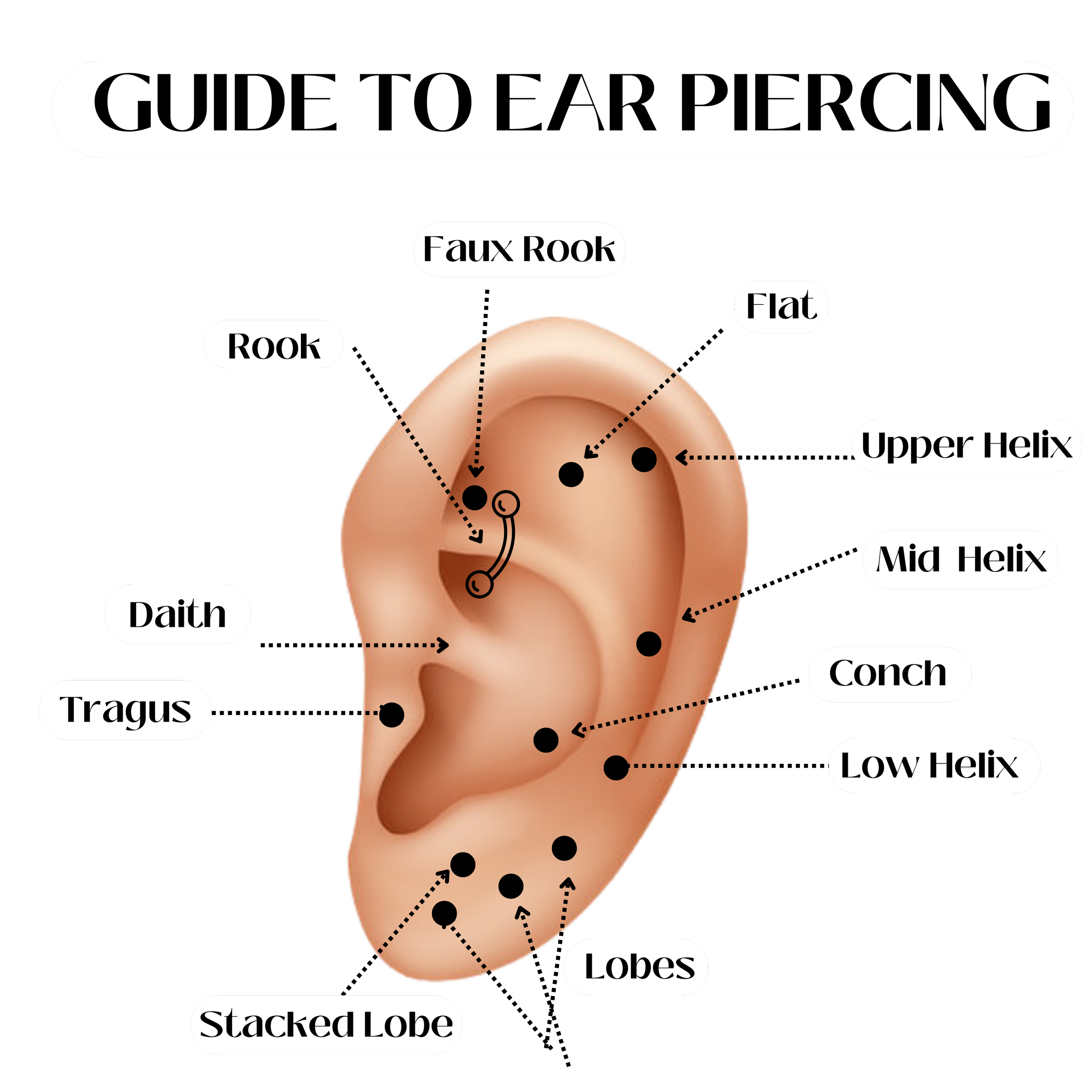 Flat piercings are located in the flat cartilage area in the top center part of your ear between your rook piercing and helix piercings. This piercing is an essential addition to any ear! It is a true statement piece with its location and can really be the perfect addition!